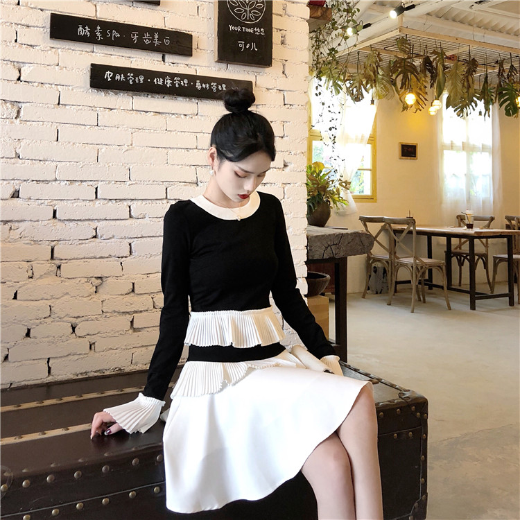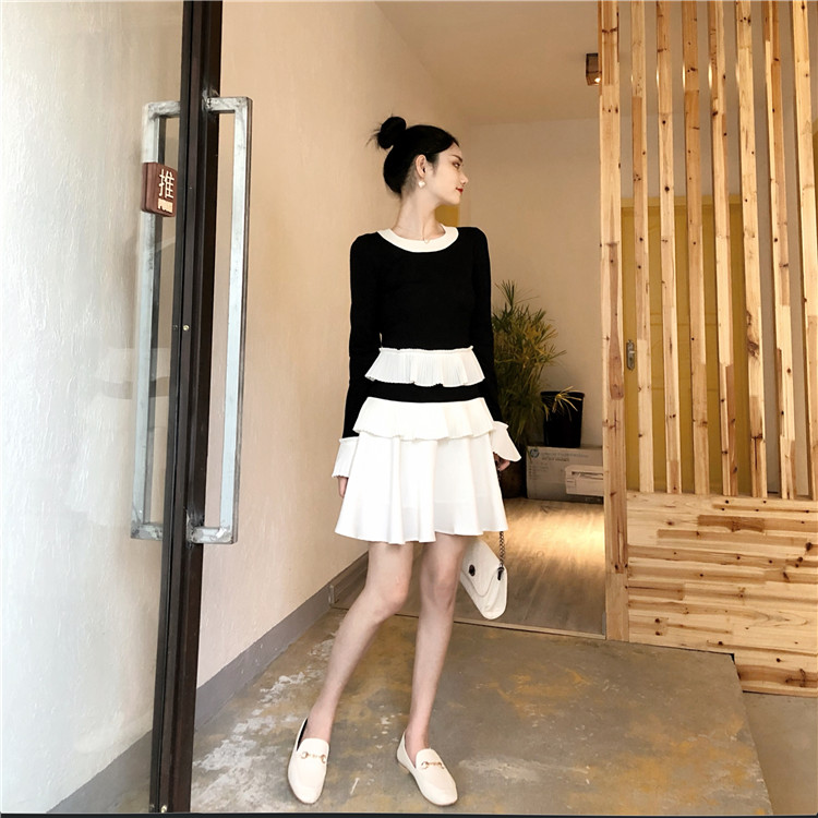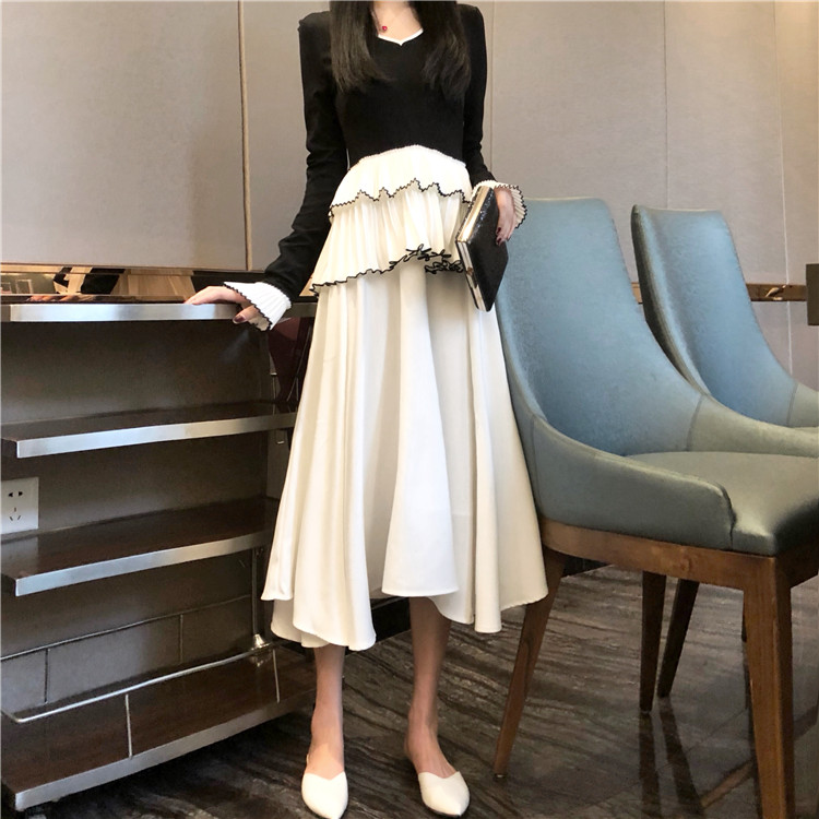 [現貨]姊妹裝黑白撞色氣質蛋糕裙