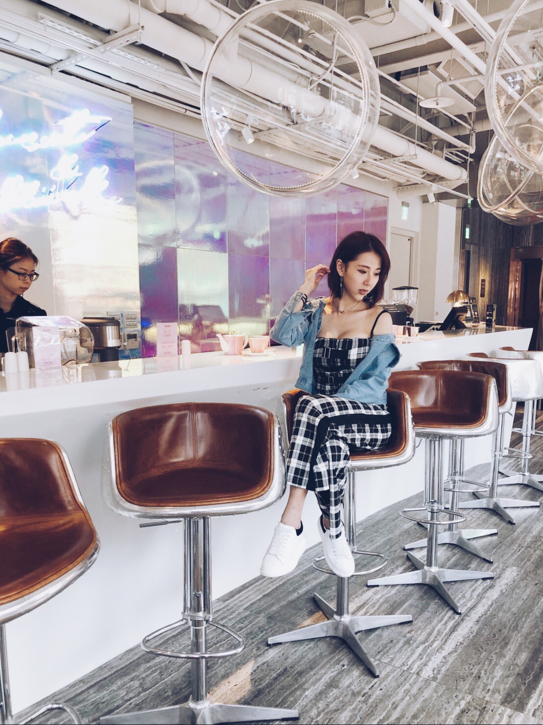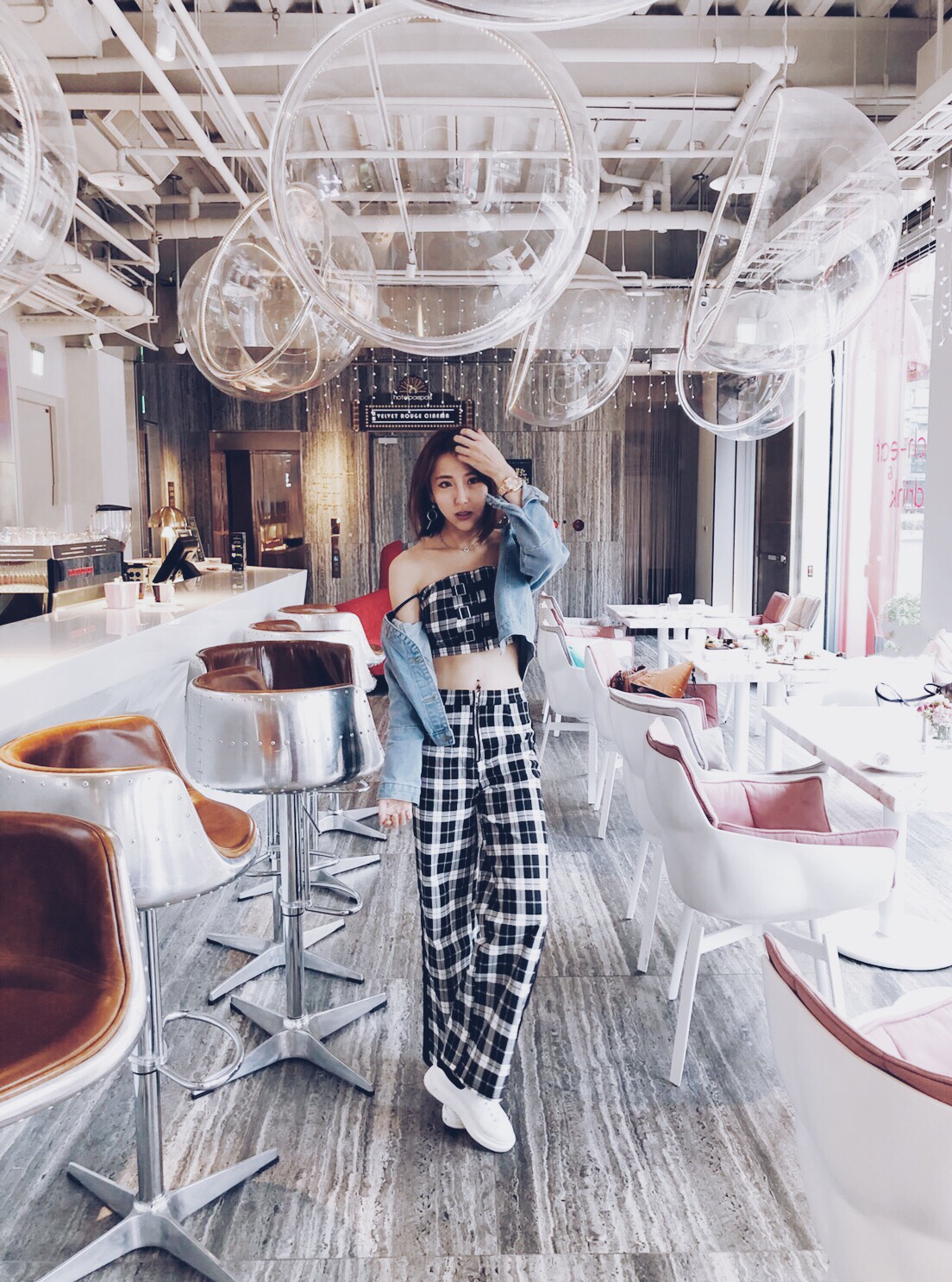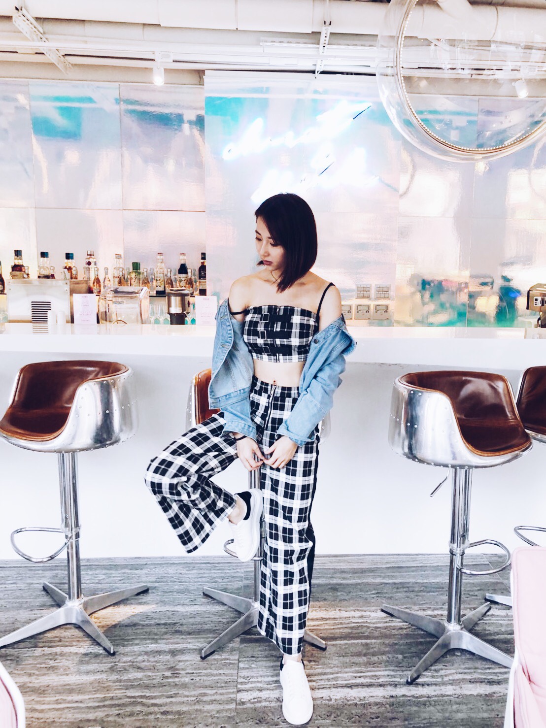 格紋上衣+高腰闊褲 - D01671