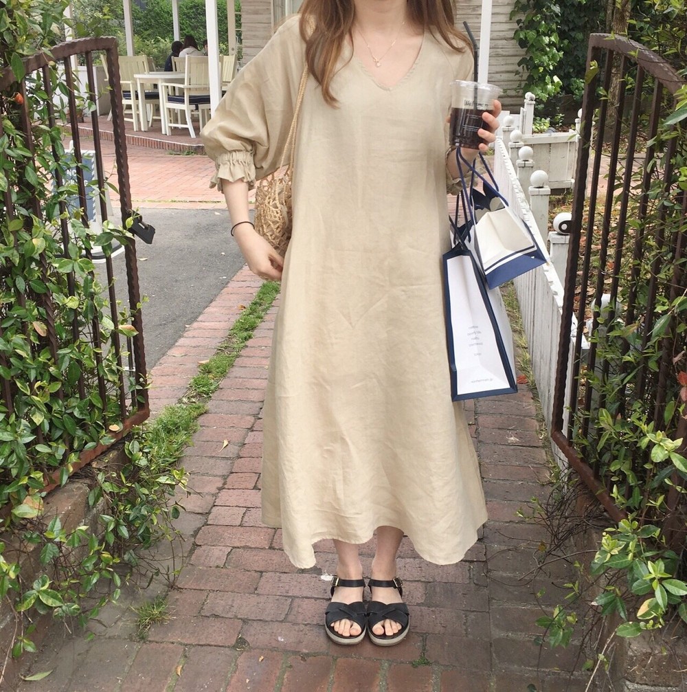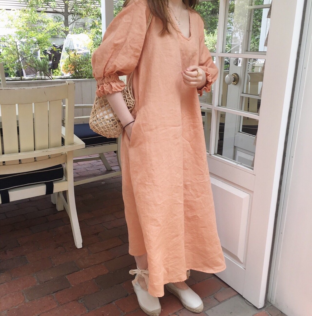 棉麻洋裝屬於輕薄的材質,屬於休閒感穿搭風格。建議可以選擇顏色較鮮明的棉麻洋裝,或是以高跟鞋、涼鞋等小物來搭配,將整體的穿搭做一點平衡!