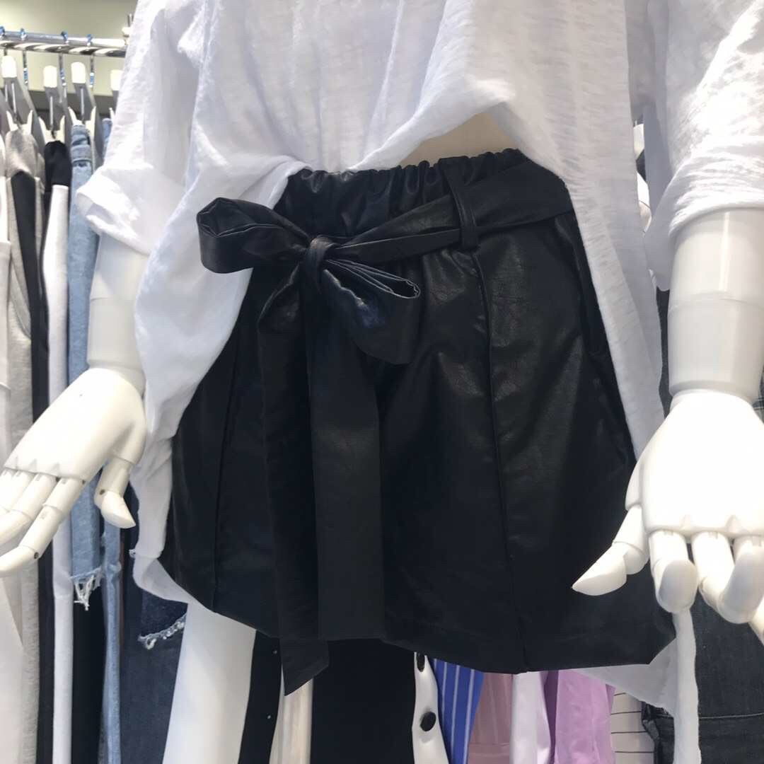 [韓國連線] 蝴蝶結高腰皮褲 [斷貨]