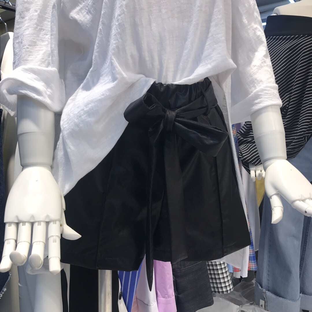 高腰設計視覺上提升 ... 蝴蝶結系帶闊腿短褲,闊腿短褲版型遮肉肉,輕鬆露出白皙大長腿。