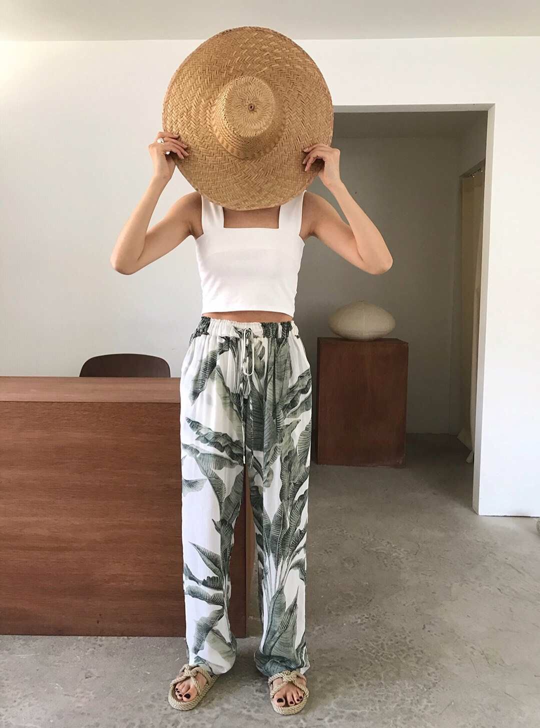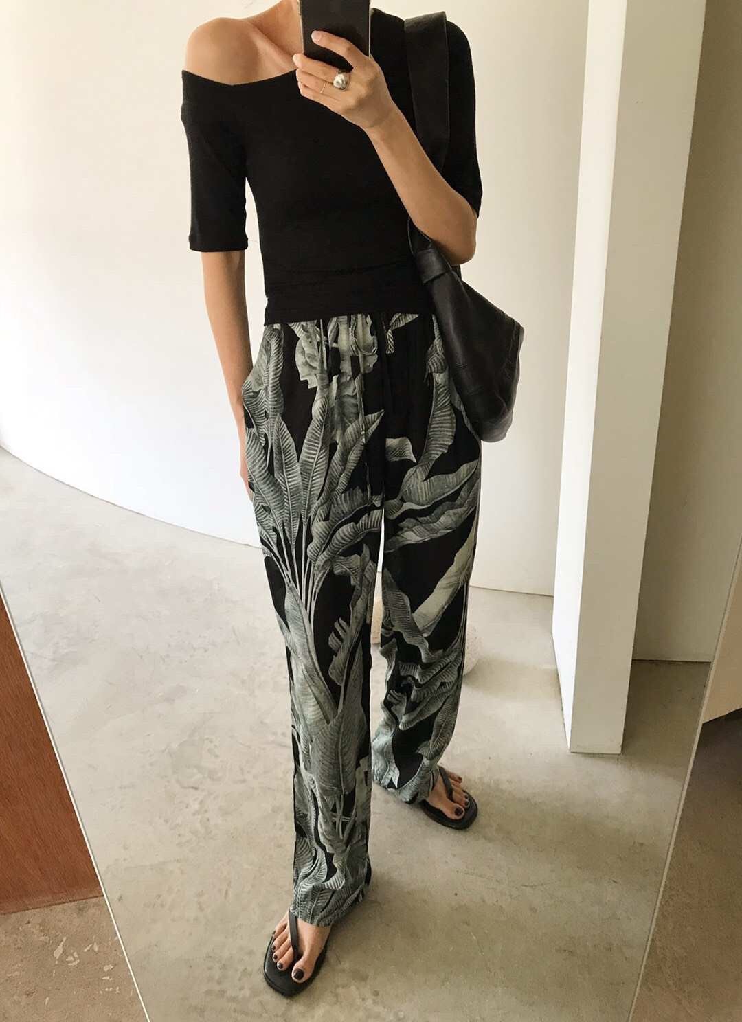 [韓國直飛]鬆緊腰樹葉闊腿褲