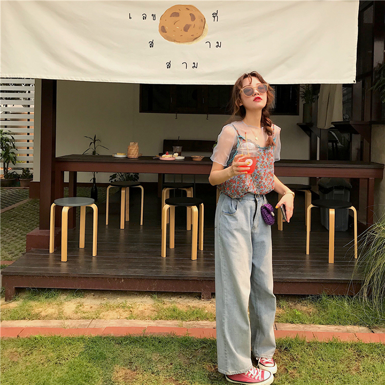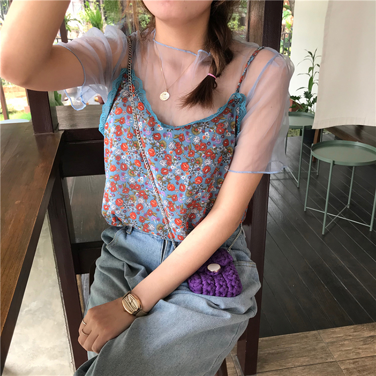 薄紗碎花背心上衣
