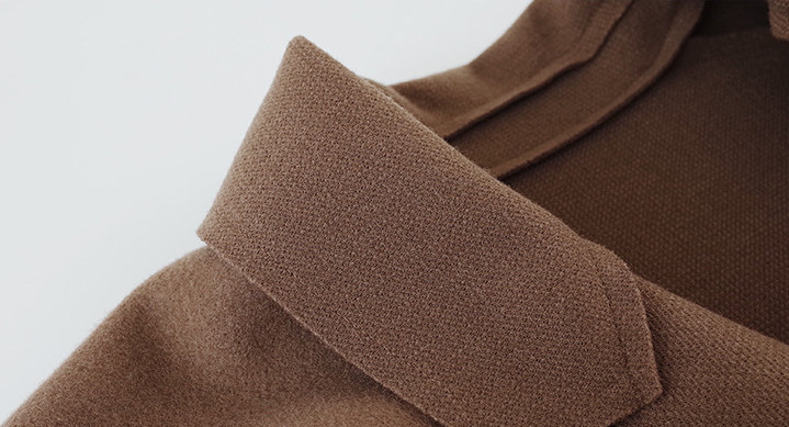 翻領的設計大落肩造型,彰顯利落大氣的質感