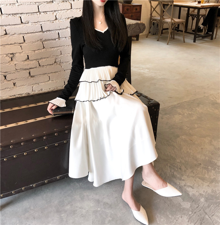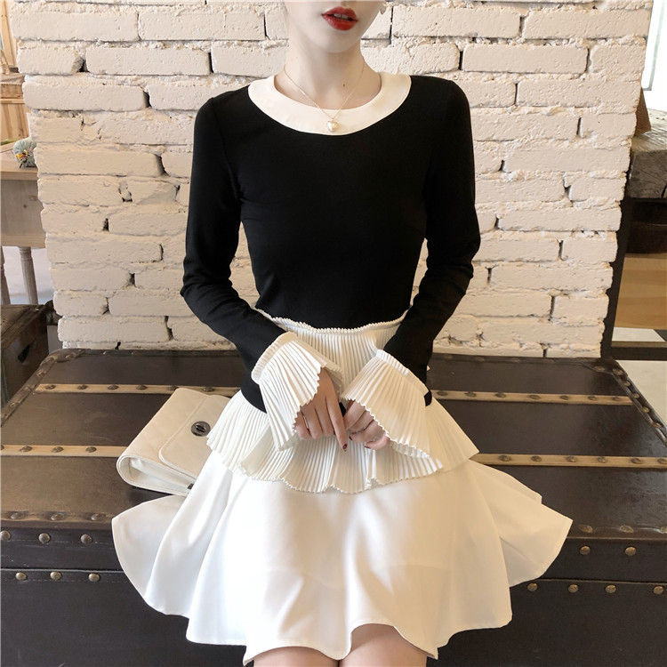 [現貨]姊妹裝黑白撞色氣質蛋糕裙