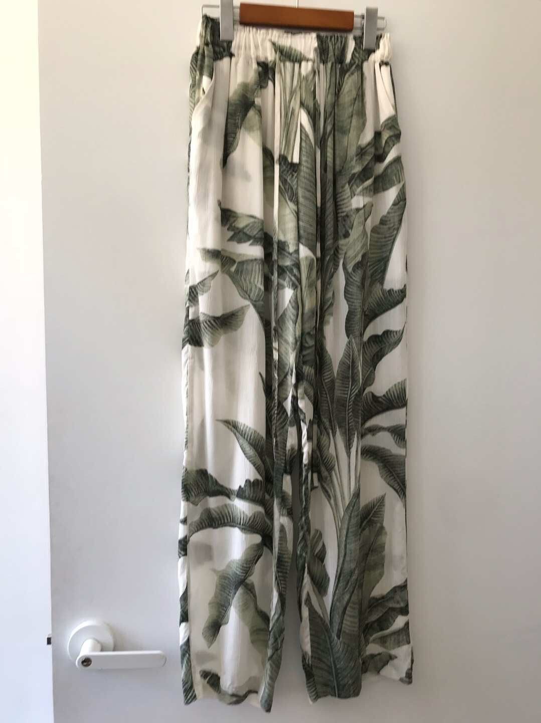 [韓國直飛]鬆緊腰樹葉闊腿褲