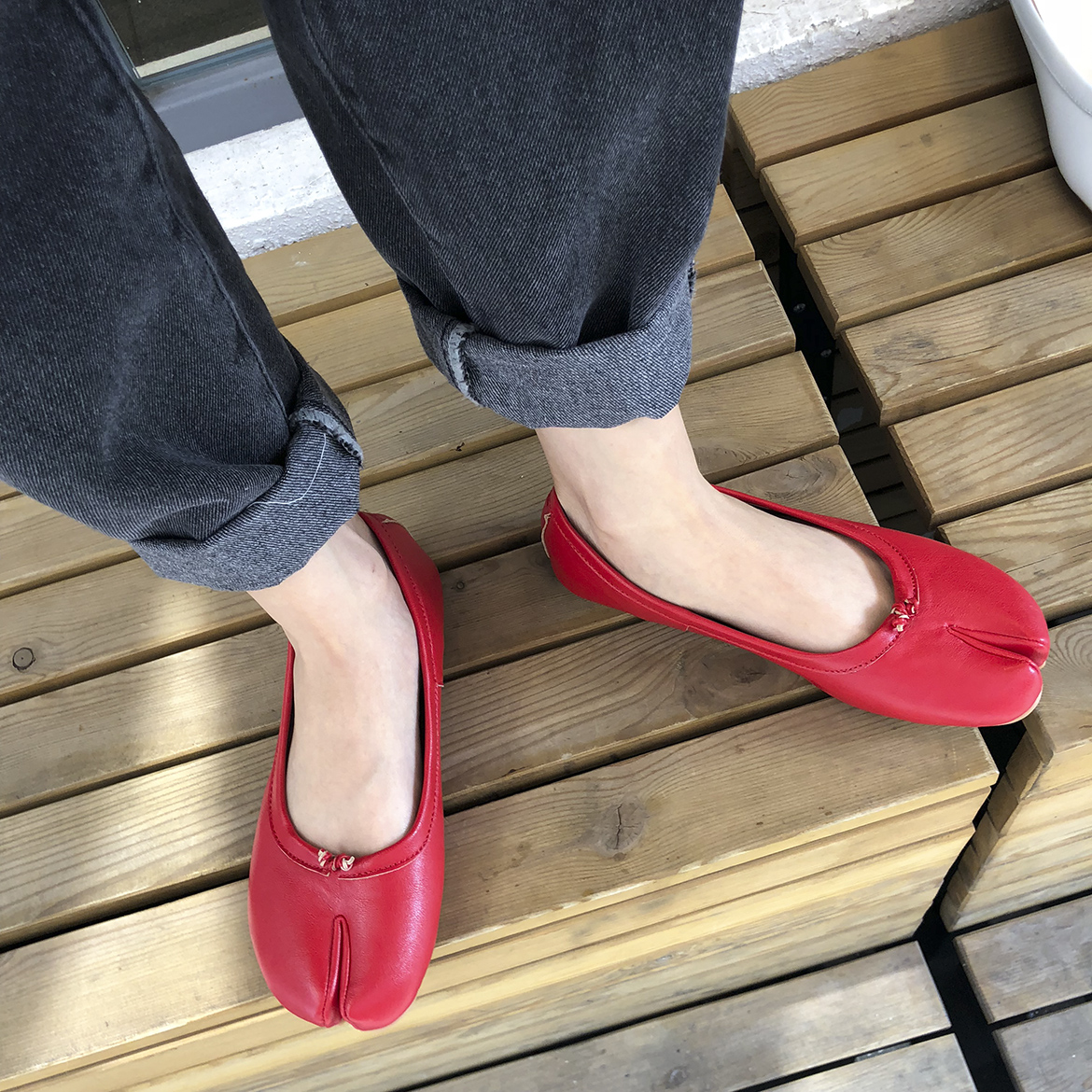 這款豬蹄鞋,顏色溫柔典雅,簡約的剪裁,利落乾淨,除了分趾的設計,其他還算甜美規矩。用它來搭配一身素雅溫婉的穿搭,竟然意外的合適。