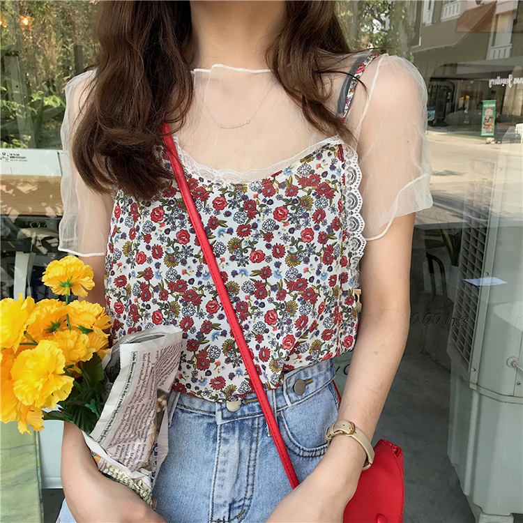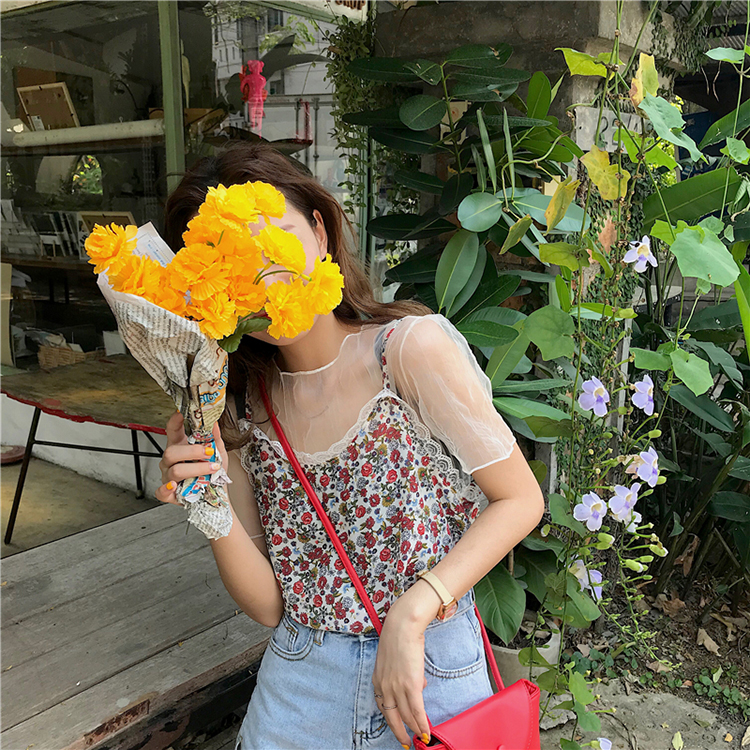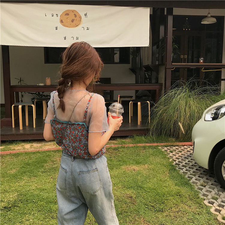薄紗碎花背心上衣